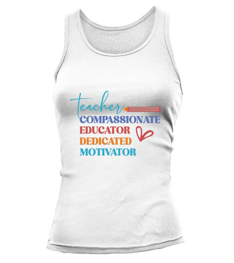 Shop teacher educator compassionate dedicated motivator Tank top Woman custom made just for you. Available on many styles, sizes, and colors.