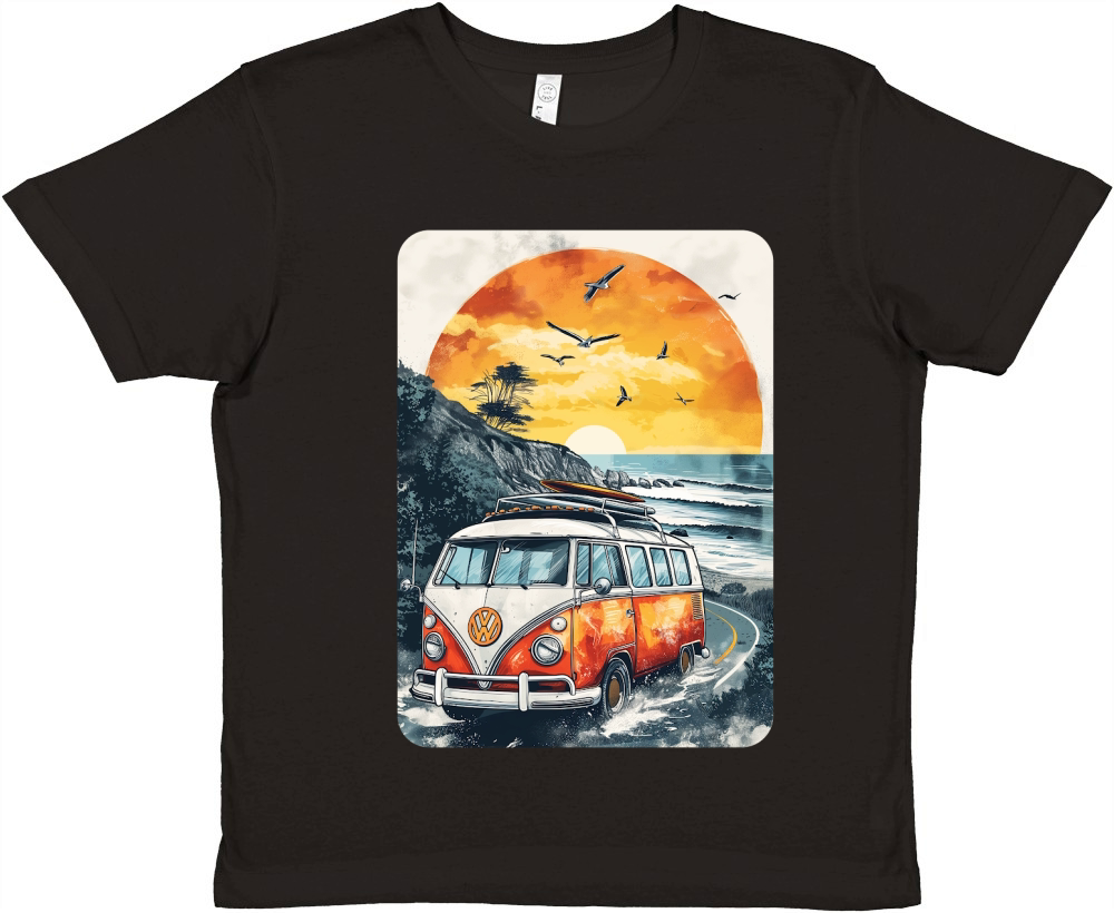 Shop Vintage Van Summer Road Trip Premium Kids Crewneck T-shirt custom made just for you. Available on many styles, sizes, and colors.