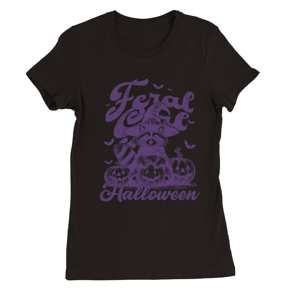 Shop Feral Girl Halloween Raccoon L Violet Premium Womens Crewneck T-shirt custom made just for you. Available on many styles, sizes, and colors.