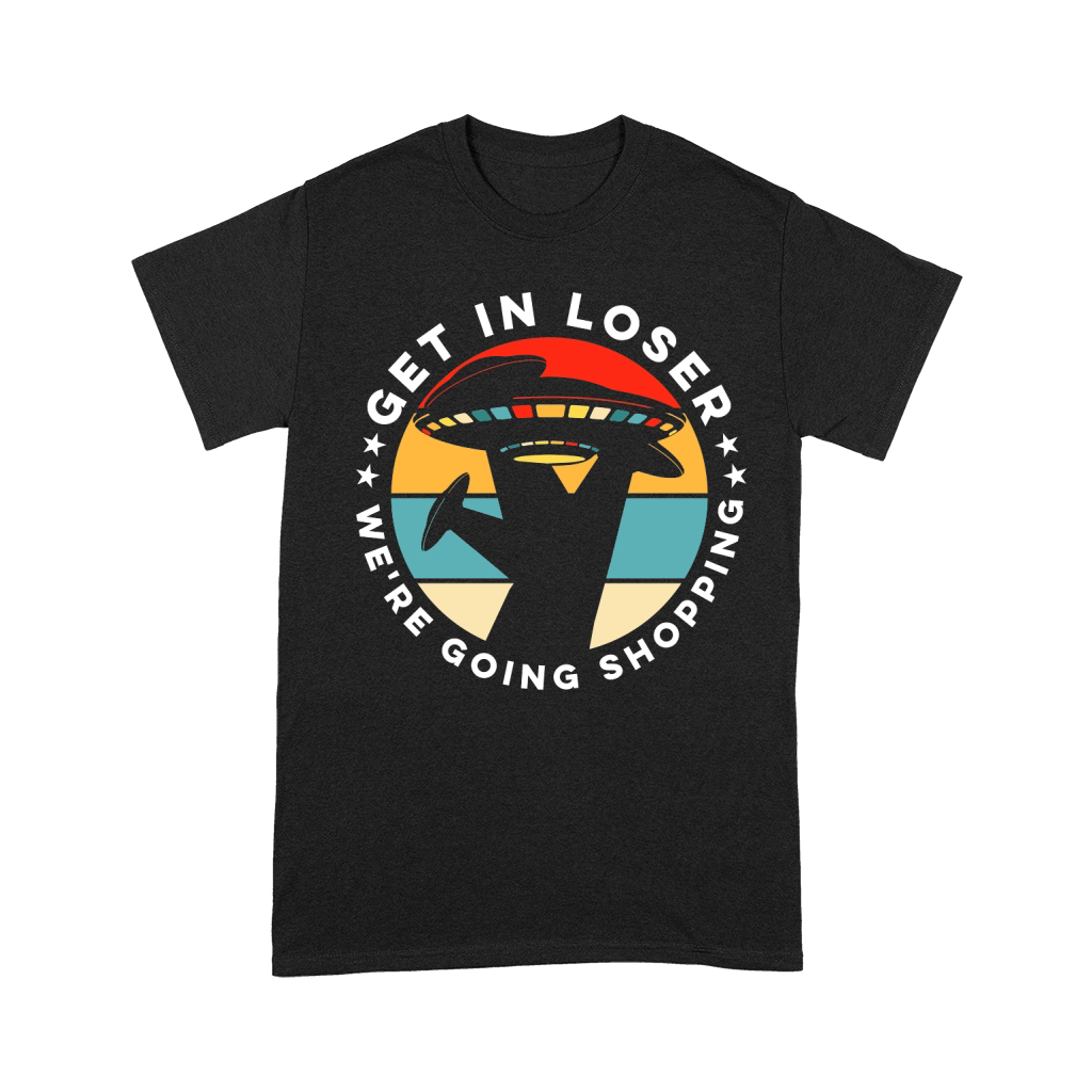 Shop Vintage UFO Alien Get In Loser We are going shopping Unisex T-Shirt custom made just for you. Available on many styles, sizes, and colors.