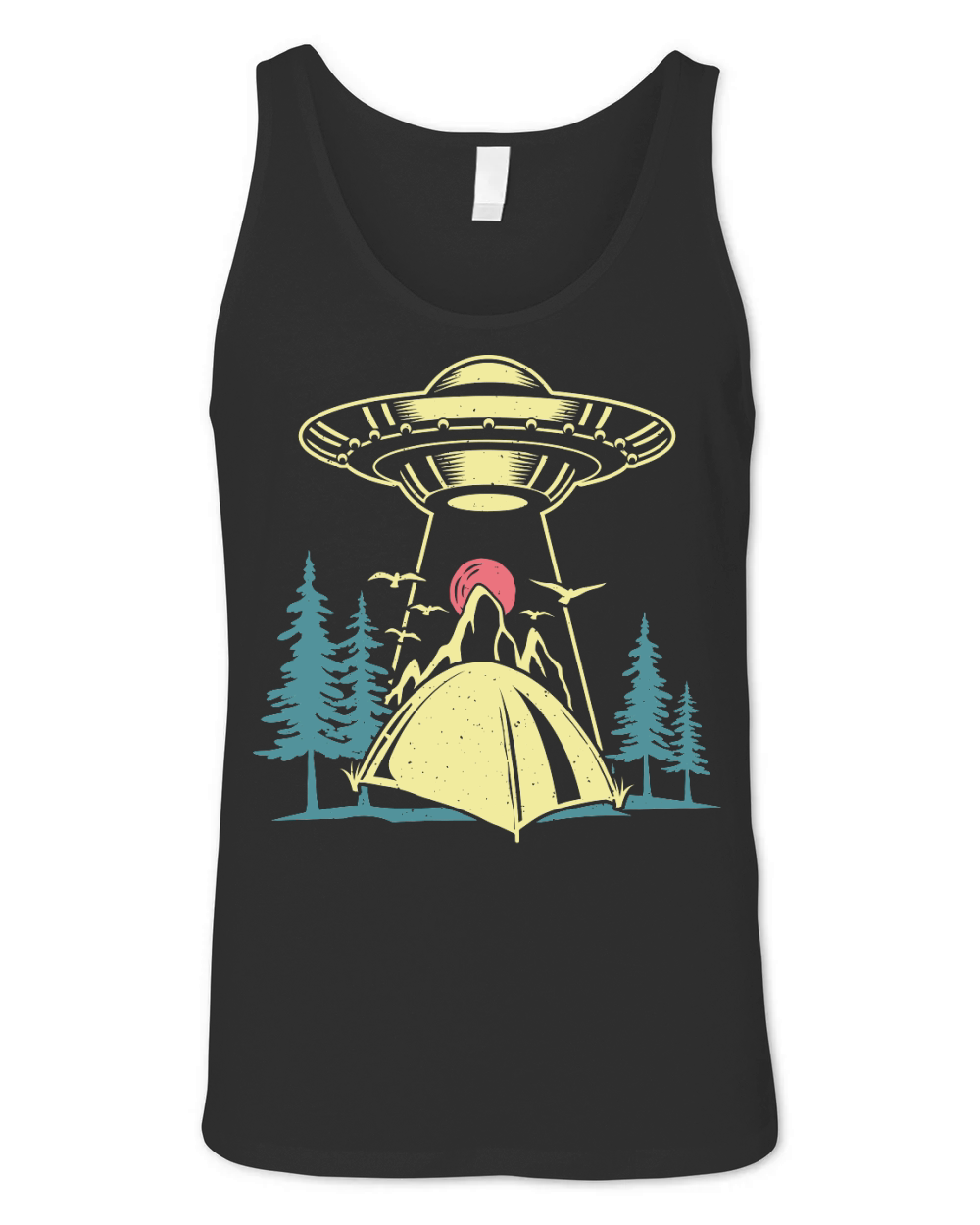 Shop Vintage UFO Alien camping mountain Unisex Jersey Tank custom made just for you. Available on many styles, sizes, and colors.