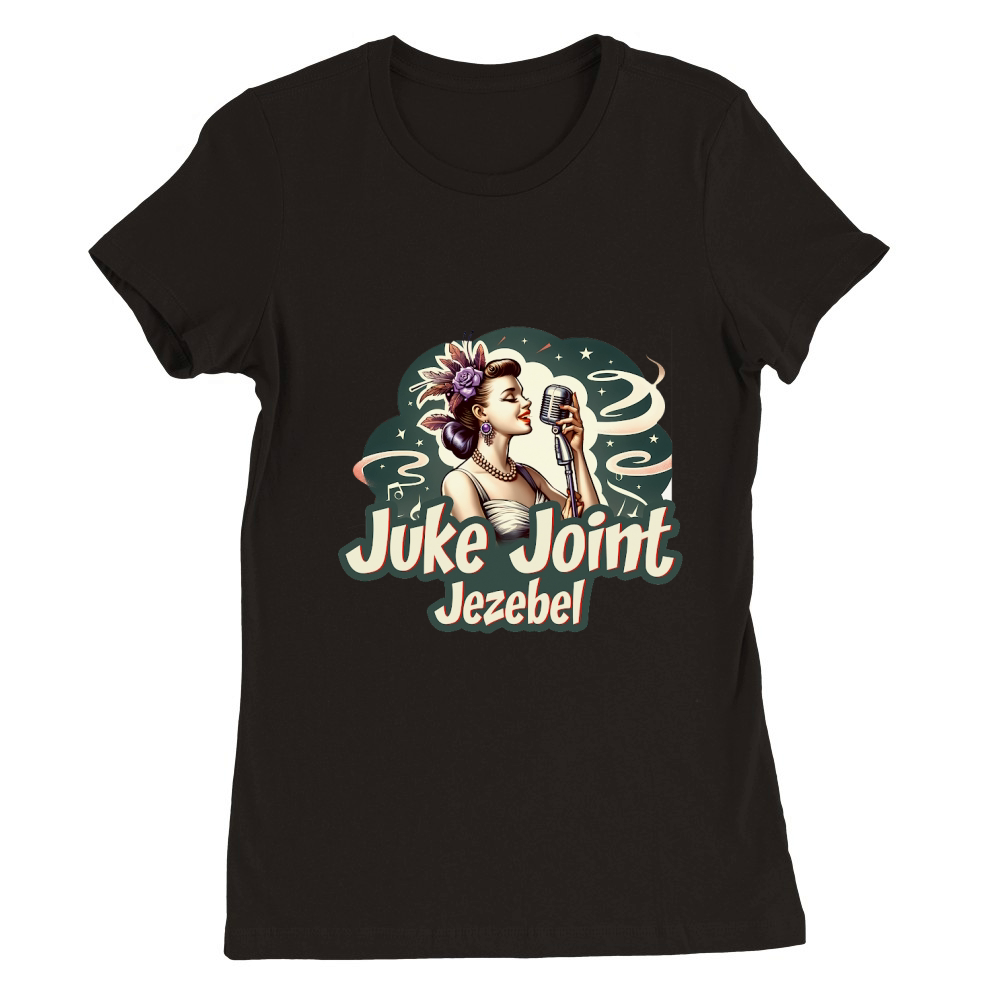 Shop Retro Vintage juke joint jezebel Premium Womens Crewneck T-shirt custom made just for you. Available on many styles, sizes, and colors.