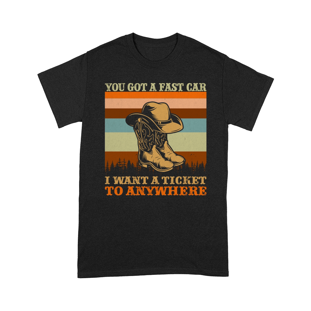 Shop You Got A Fast Car I Want A Ticket To Anywhere Cowboy Boots Comfort T-shirt custom made just for you. Available on many styles, sizes, and colors.