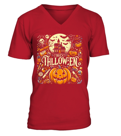 Shop trick i halloween V-Neck T-shirt custom made just for you. Available on many styles, sizes, and colors.