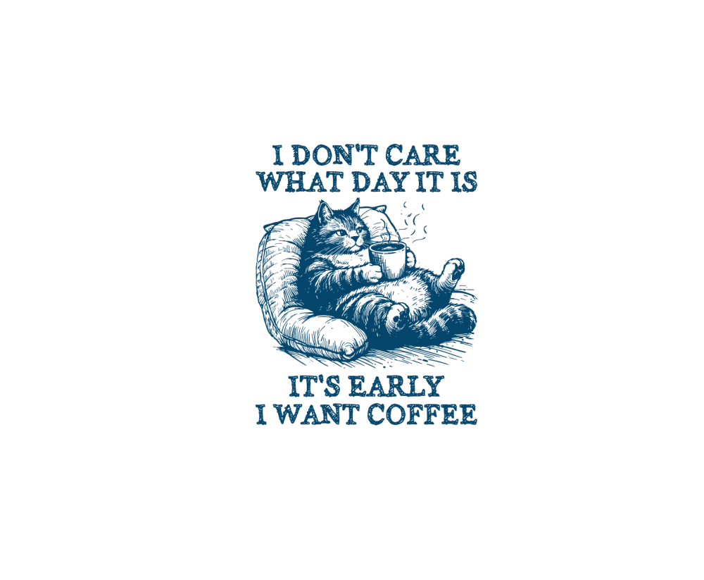 Cat Don’t Care Just Want Coffee L Blue