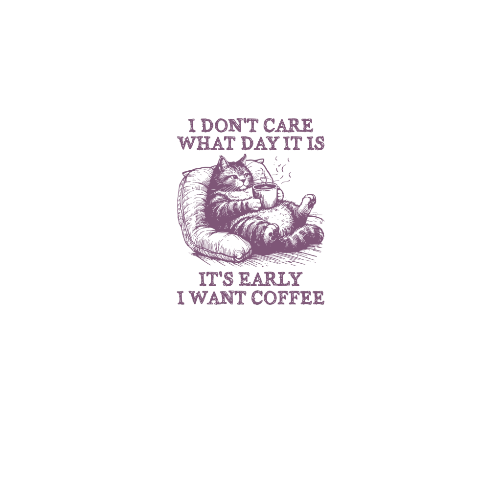 Cat Don’t Care Just Want Coffee L Purple