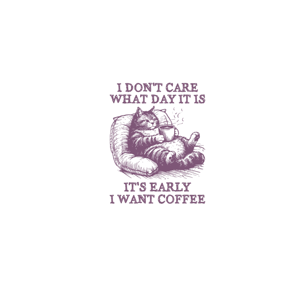 Cat Don’t Care Just Want Coffee L Purple