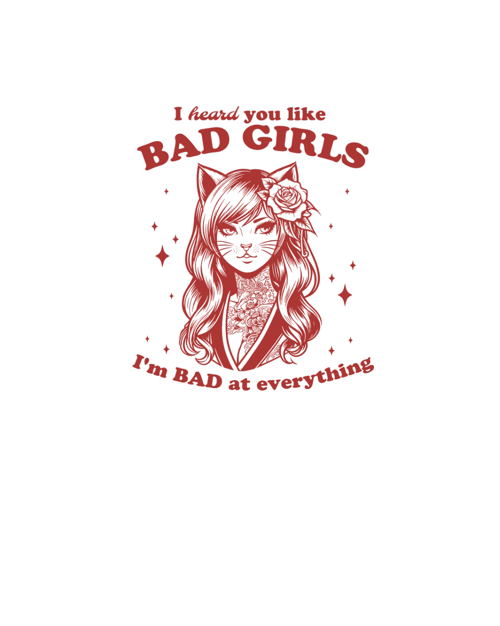 Shop Cat Girl I Heard You Like Bad Girls L Red Organic Unisex T-shirt custom made just for you. Available on many styles, sizes, and colors.