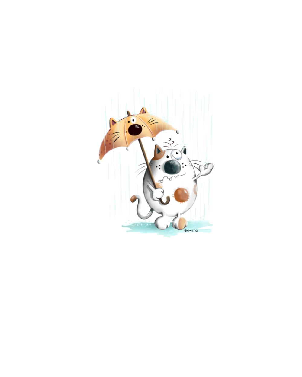 Cat In The Rain - Cats - Umbrella - Cartoon - Gift