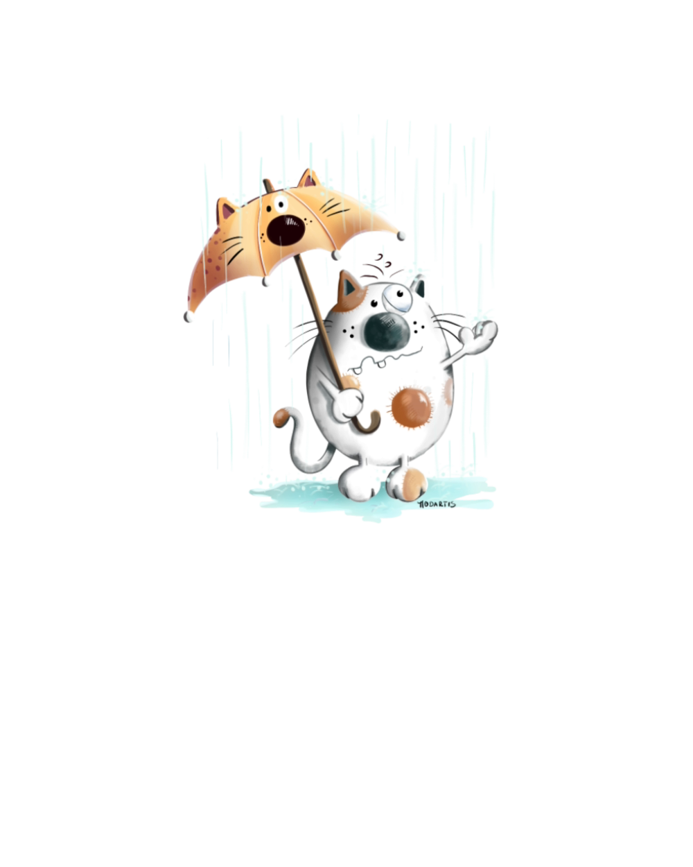 Cat In The Rain - Cats - Umbrella - Cartoon - Gift