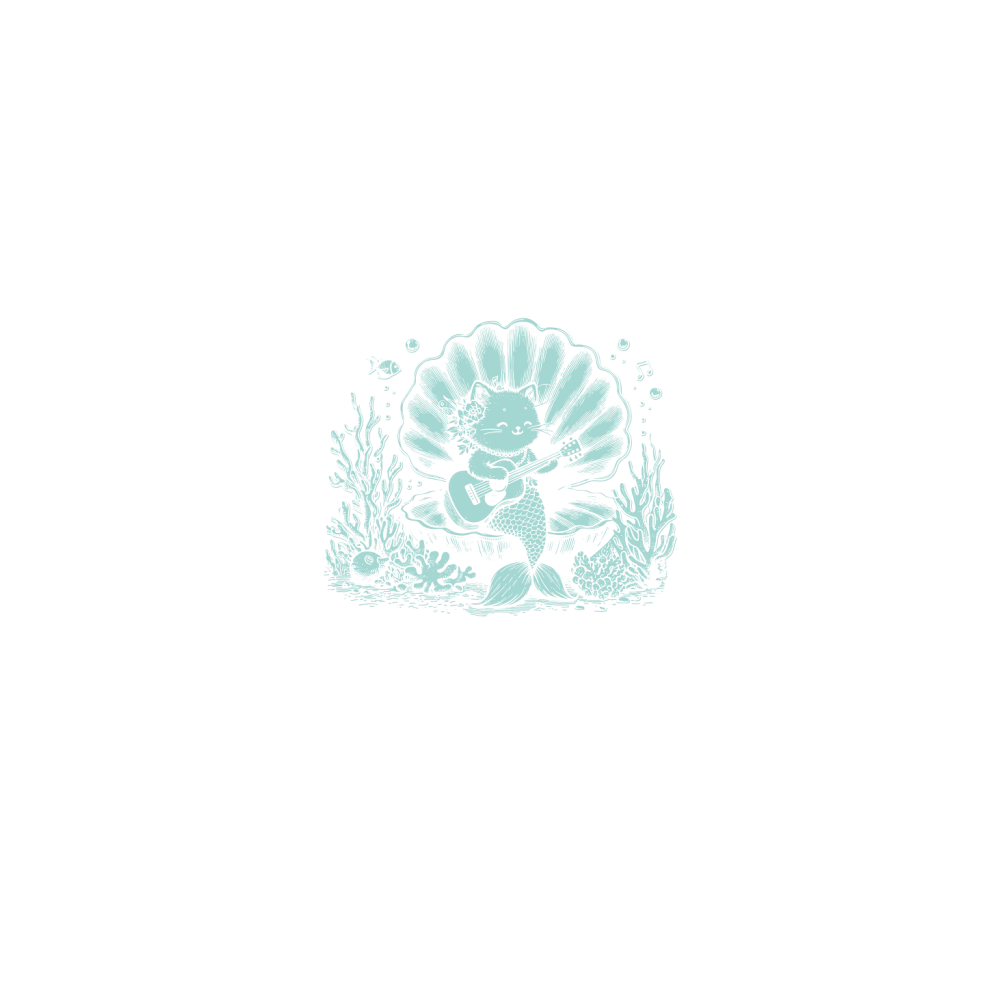 Cat Mermaid Playing Guitar D Green