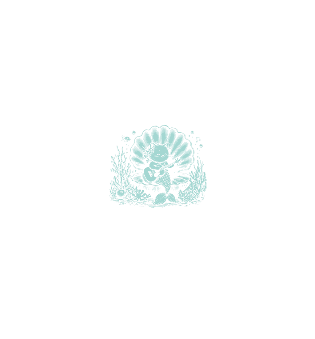 Cat Mermaid Playing Guitar D Green