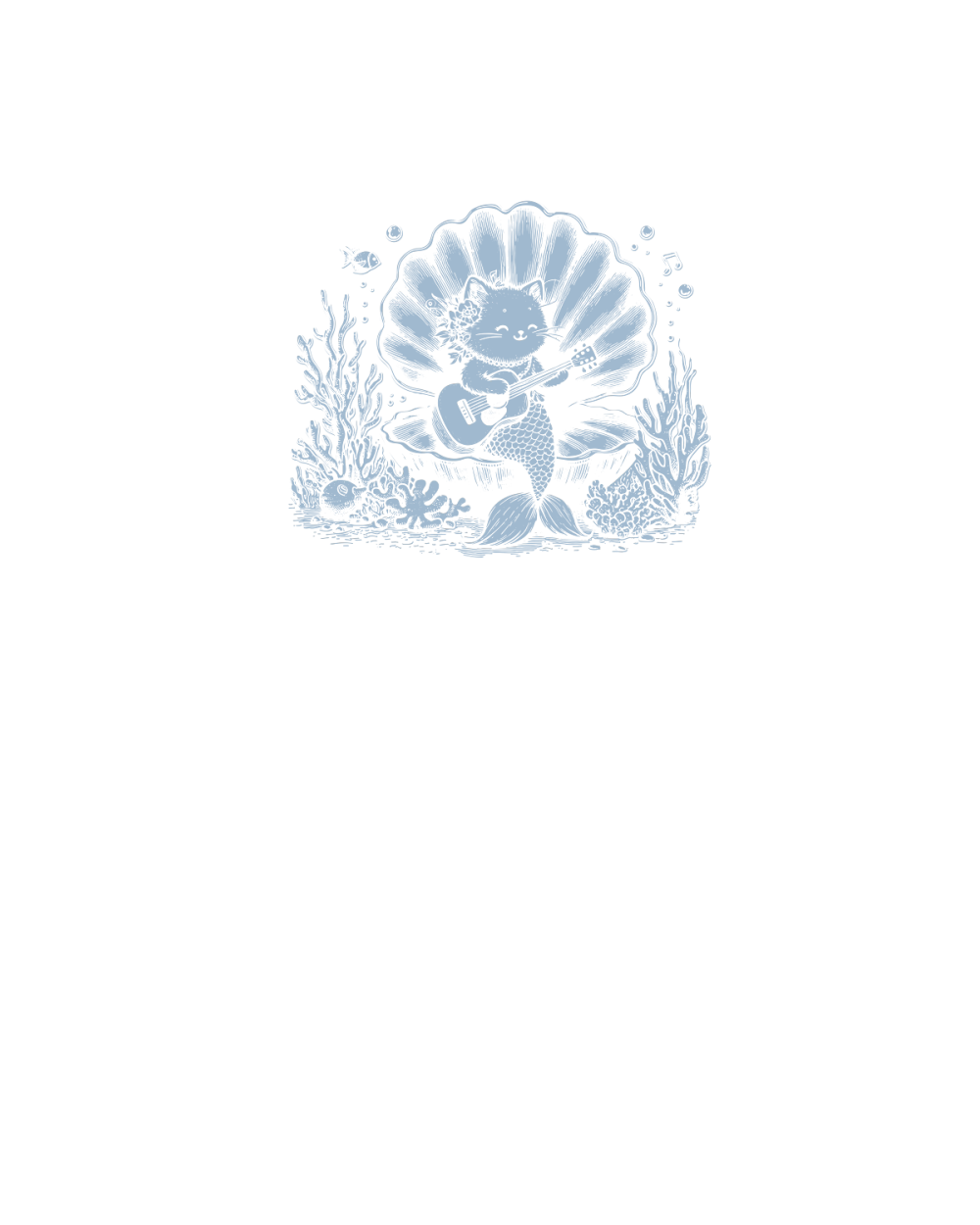 Cat Mermaid Playing Guitar D Grey