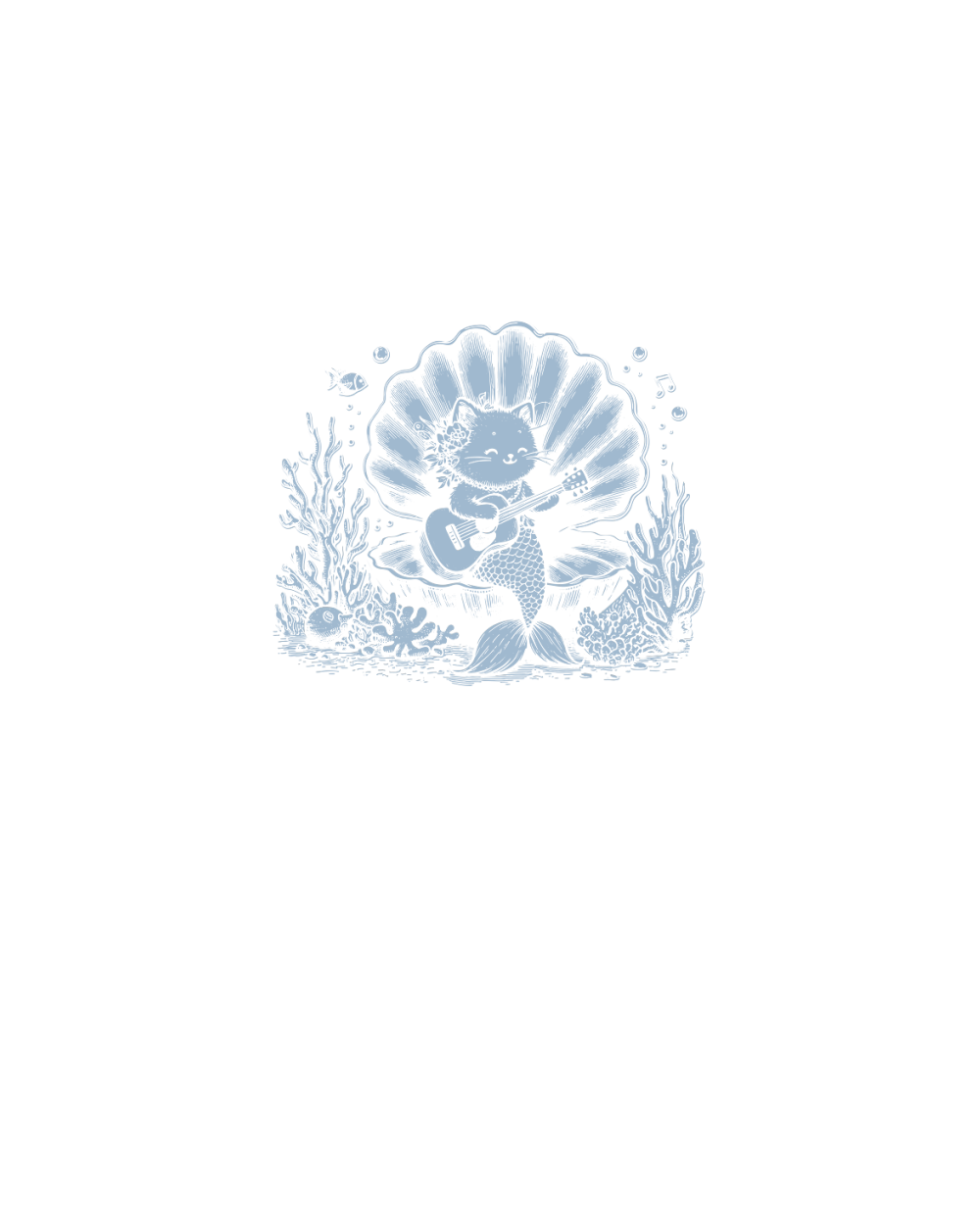 Cat Mermaid Playing Guitar D Grey