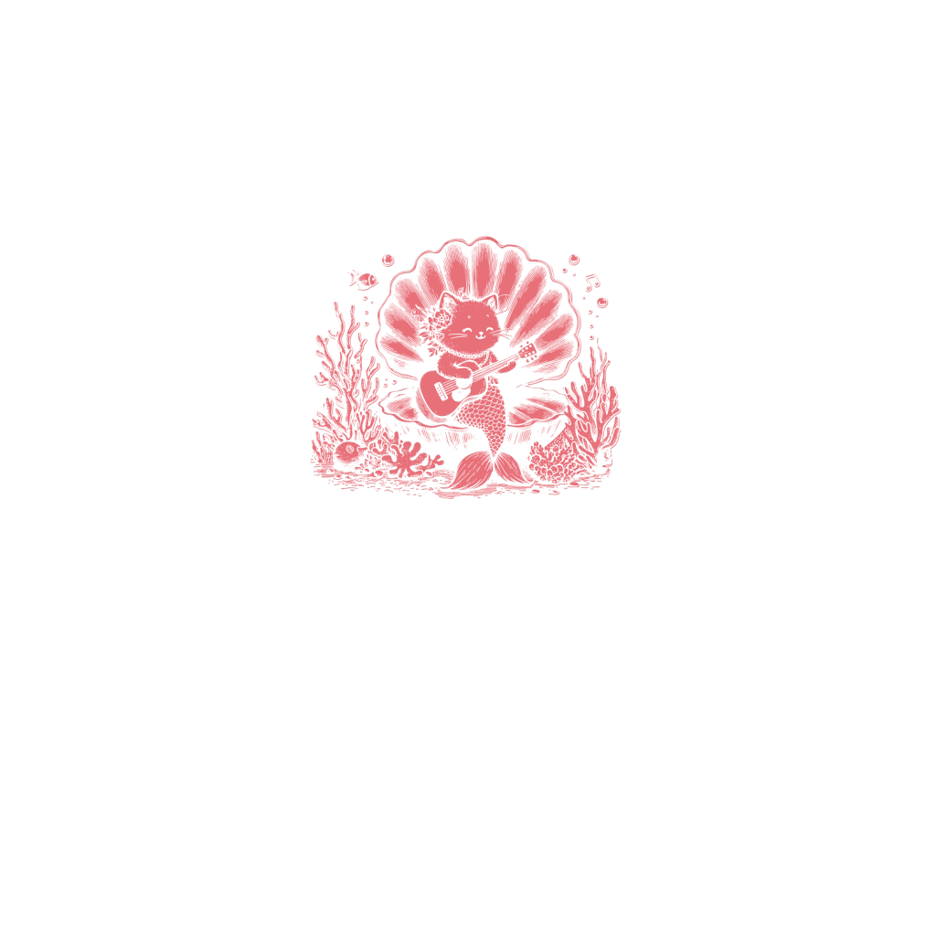 Cat Mermaid Playing Guitar D Red
