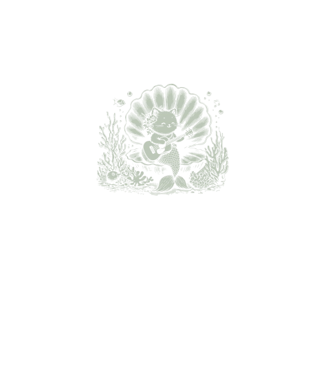Cat Mermaid Playing Guitar D Retro Green