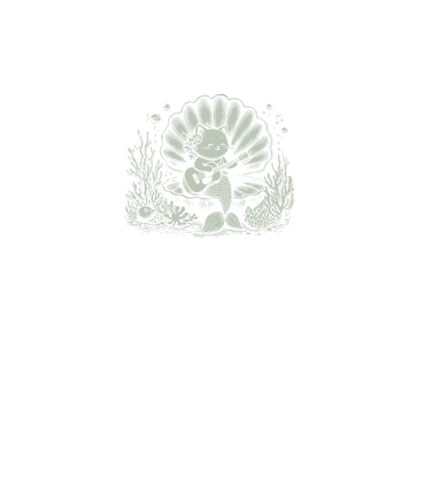 Cat Mermaid Playing Guitar D Retro Green