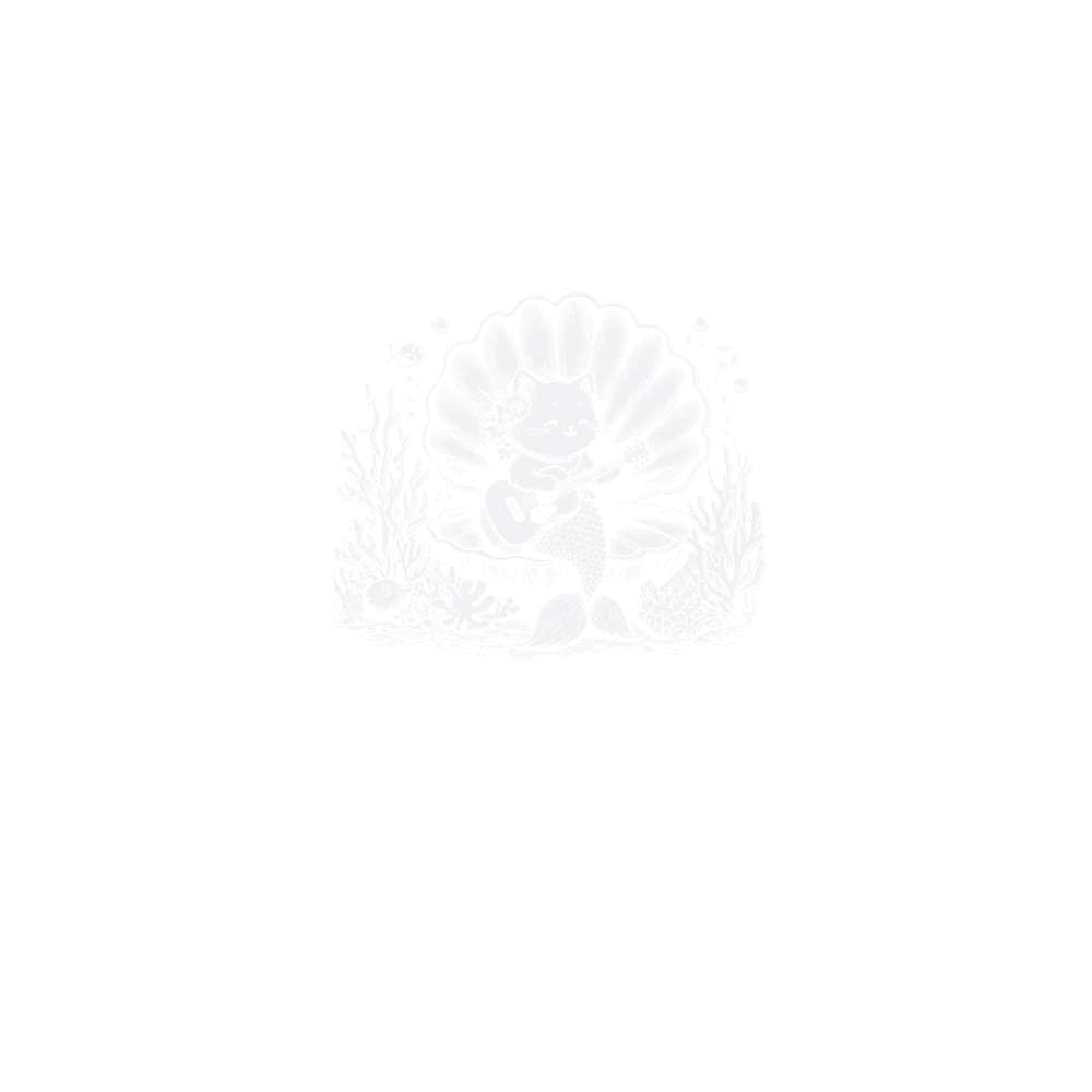 Cat Mermaid Playing Guitar D White GR