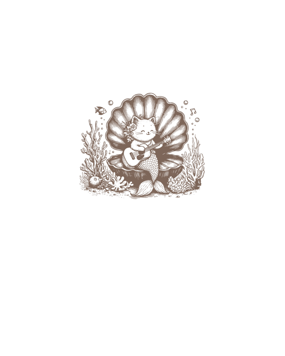 Cat Mermaid Playing Guitar L Brown