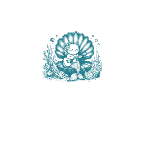 Cat Mermaid Playing Guitar L Green