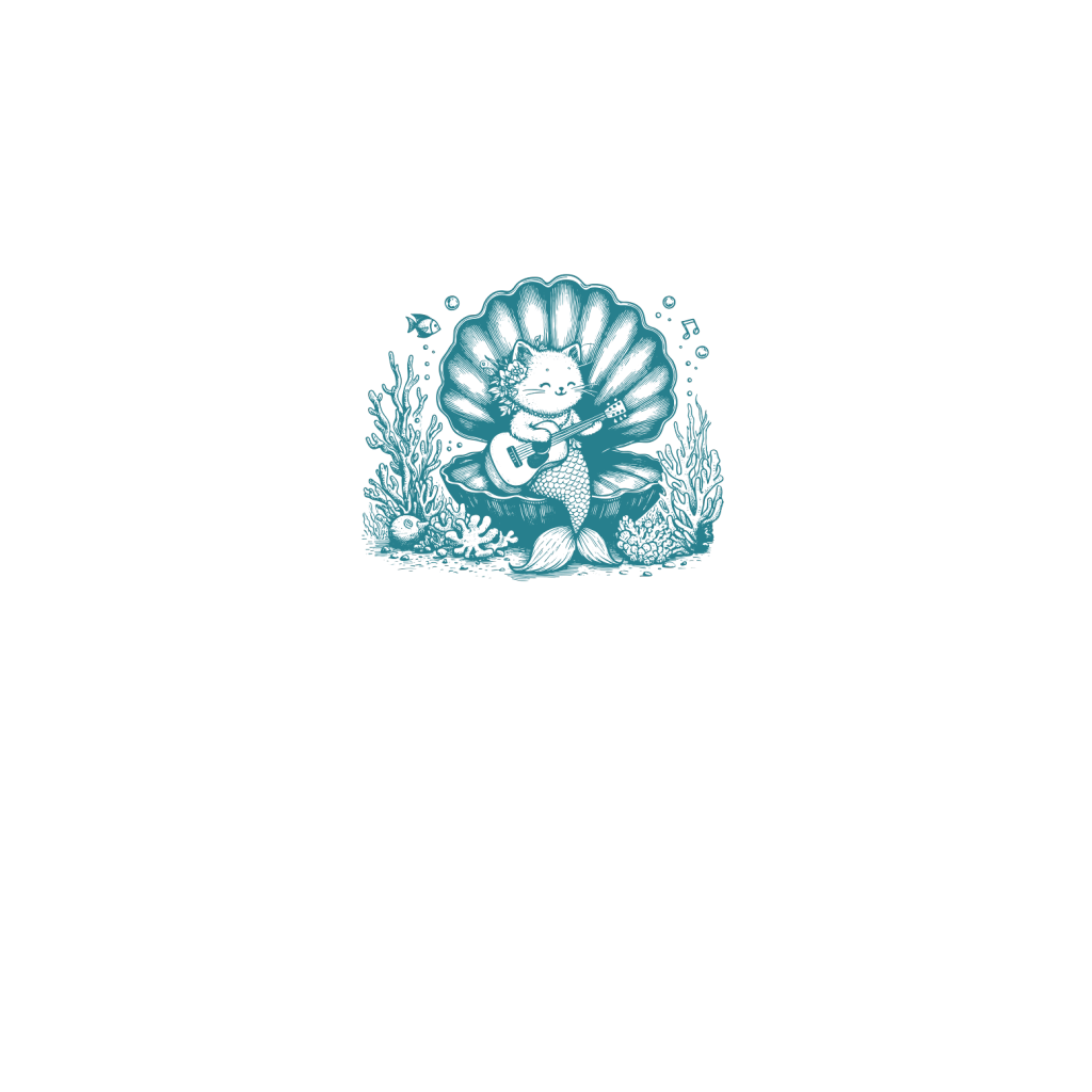 Cat Mermaid Playing Guitar L Green