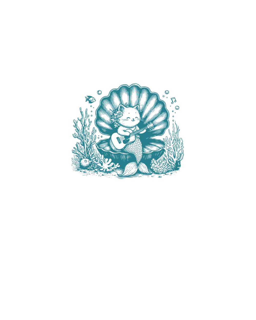 Cat Mermaid Playing Guitar L Green