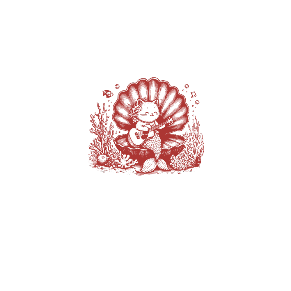 Cat Mermaid Playing Guitar L Red