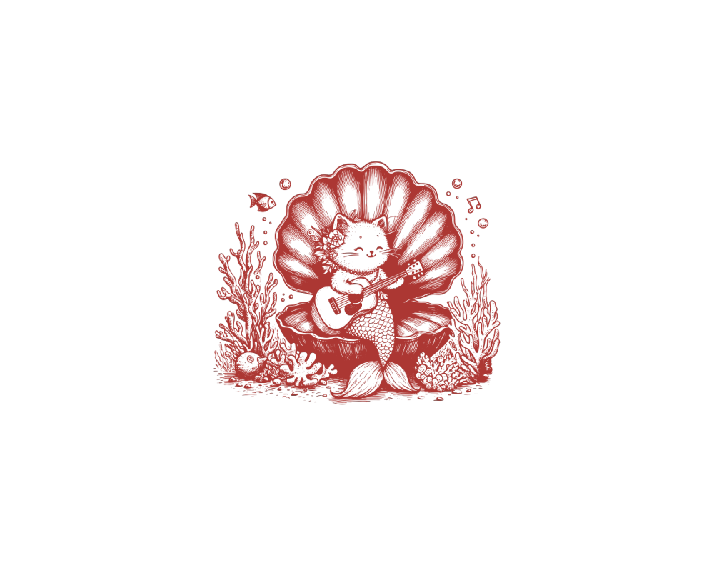 Cat Mermaid Playing Guitar L Red