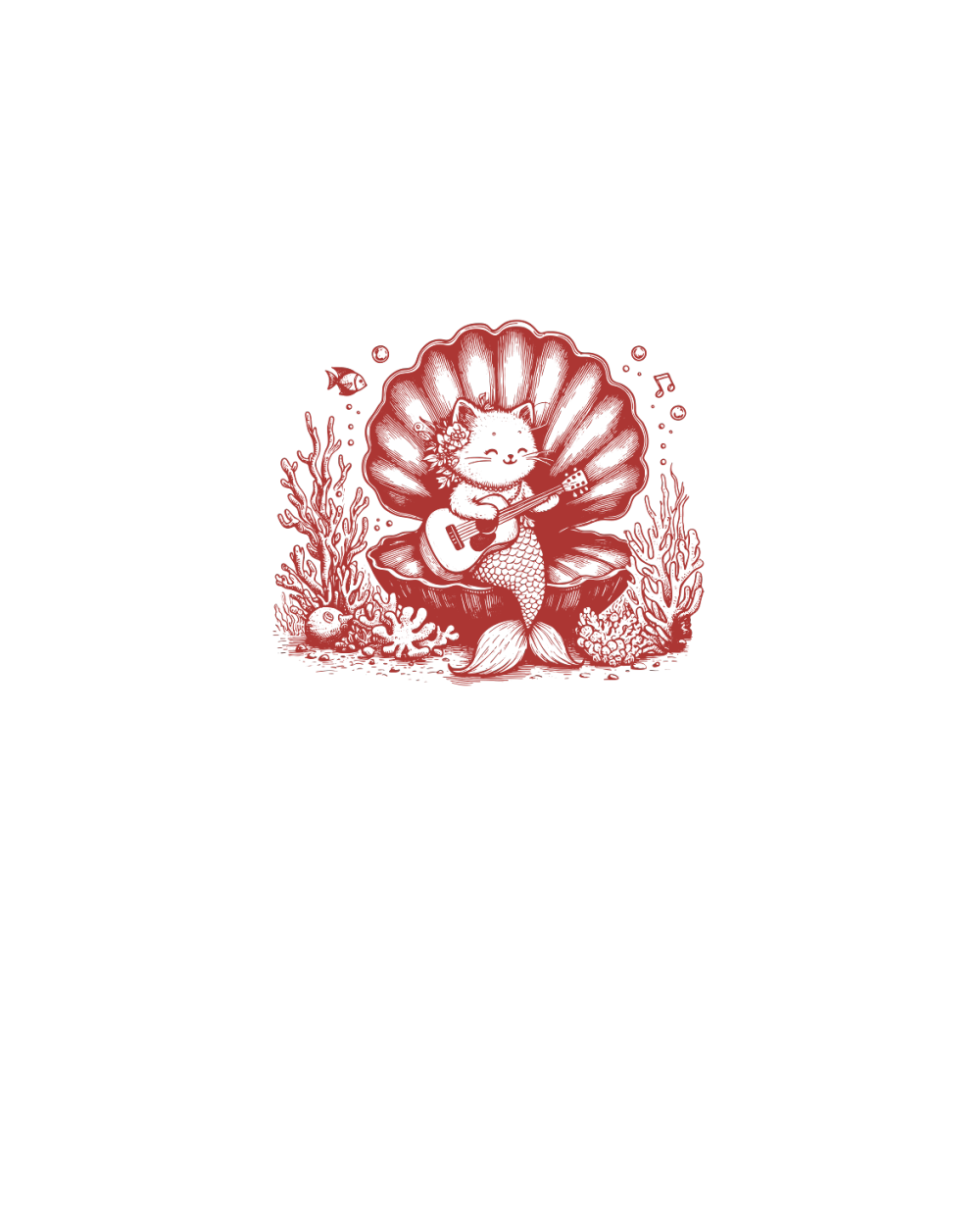 Cat Mermaid Playing Guitar L Red