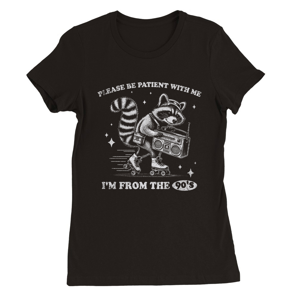 Shop Raccoon 90s Roller Skate Vintage Radio D White GR Premium Womens Crewneck T-shirt custom made just for you. Available on many styles, sizes, and colors.