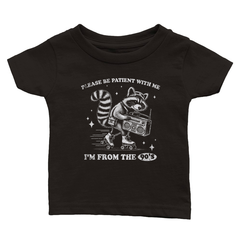 Shop Raccoon 90s Roller Skate Vintage Radio D White GR Classic Baby Crewneck T-shirt custom made just for you. Available on many styles, sizes, and colors.