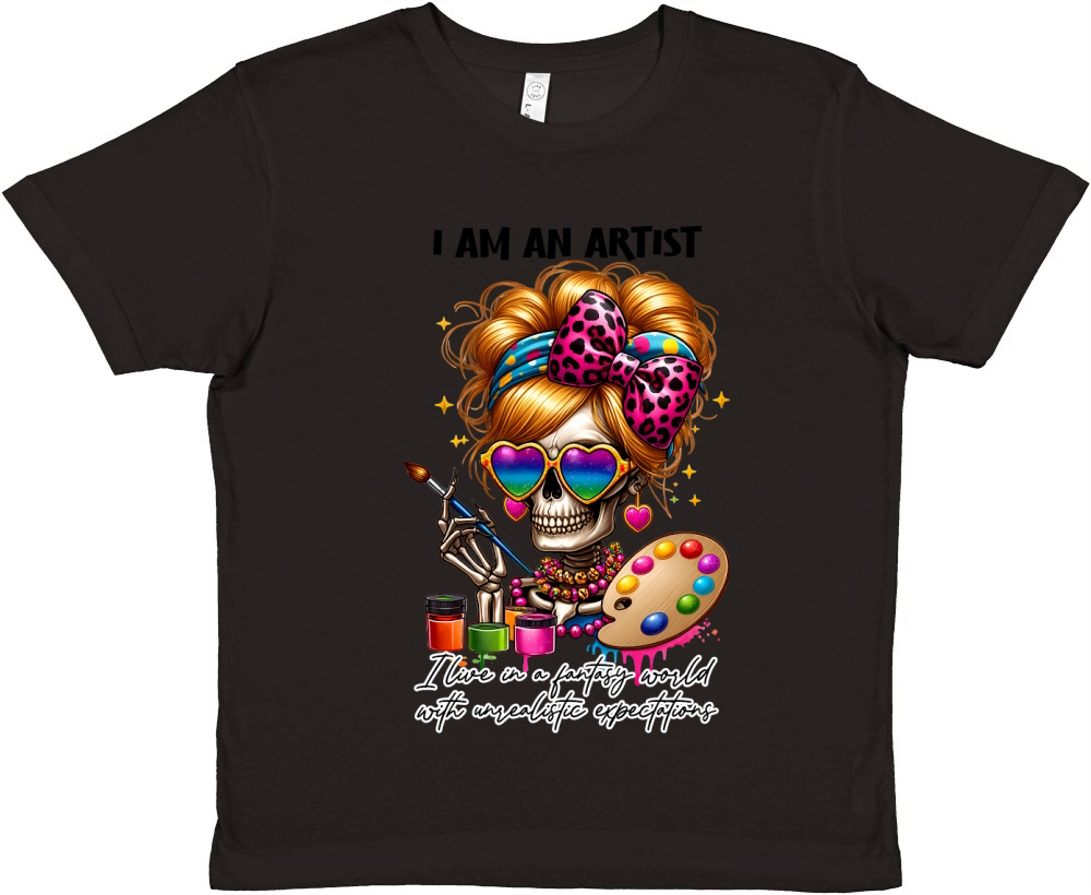 Shop i am an artist Ilive in a fantasy world with unrealistic expectations Premium Kids Crewneck T-shirt custom made just for you. Available on many styles, sizes, and colors.