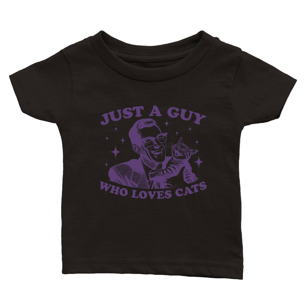 Shop Just A Guy Who Loves Cats L Violet Classic Baby Crewneck T-shirt custom made just for you. Available on many styles, sizes, and colors.