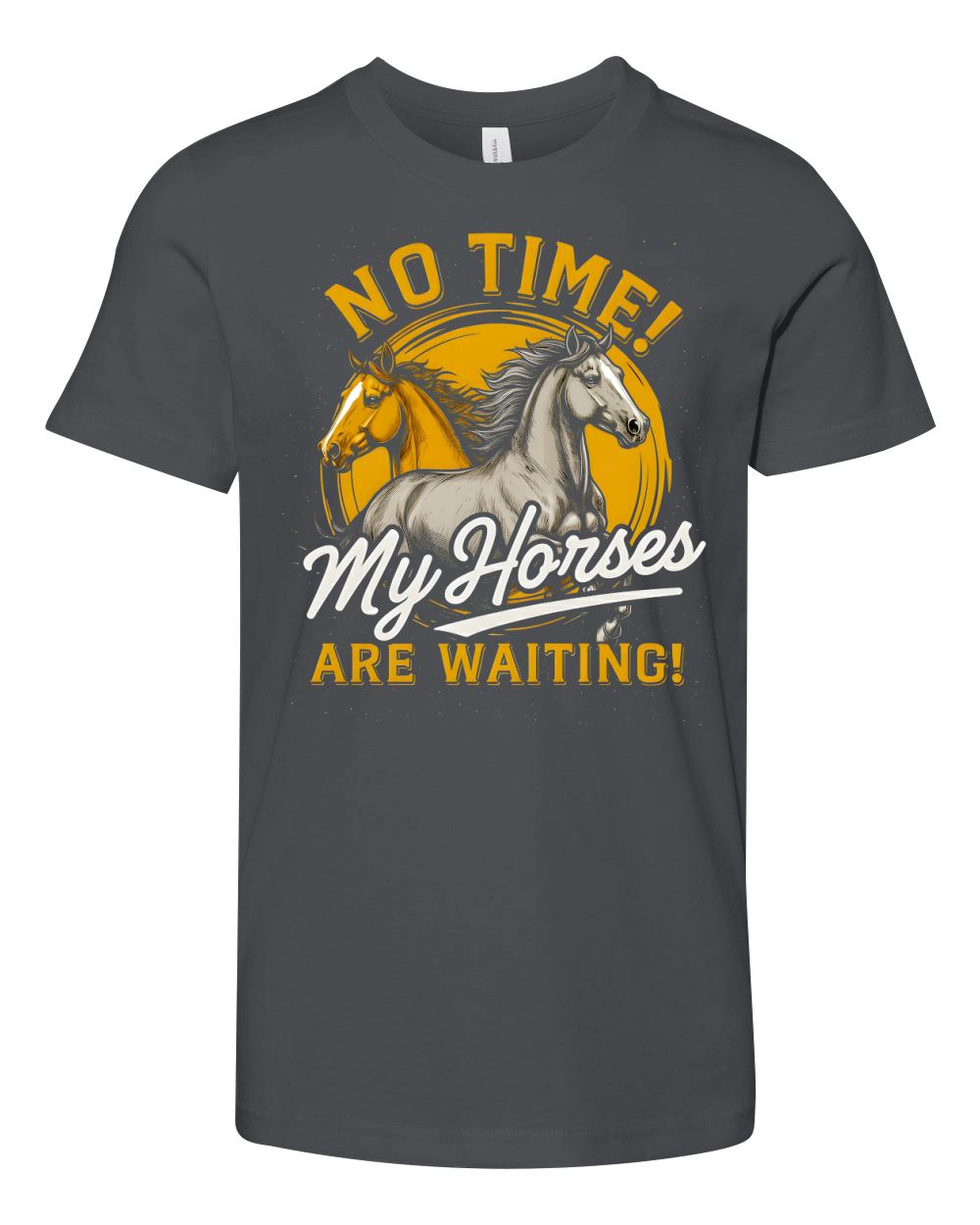 Shop No time! My Horses Are Waiting! Youth Unisex Jersey Tee custom made just for you. Available on many styles, sizes, and colors.