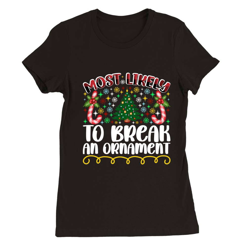 Shop Most Likely To Break An Ornament Premium Womens Crewneck T-shirt custom made just for you. Available on many styles, sizes, and colors.