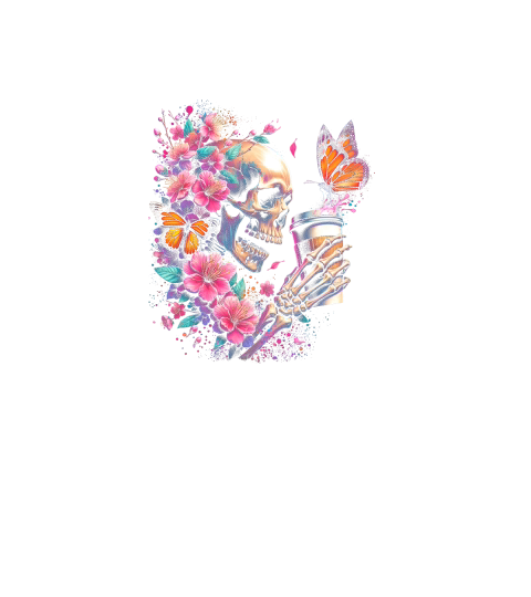 Cherry Blossom Skull with Butterflies