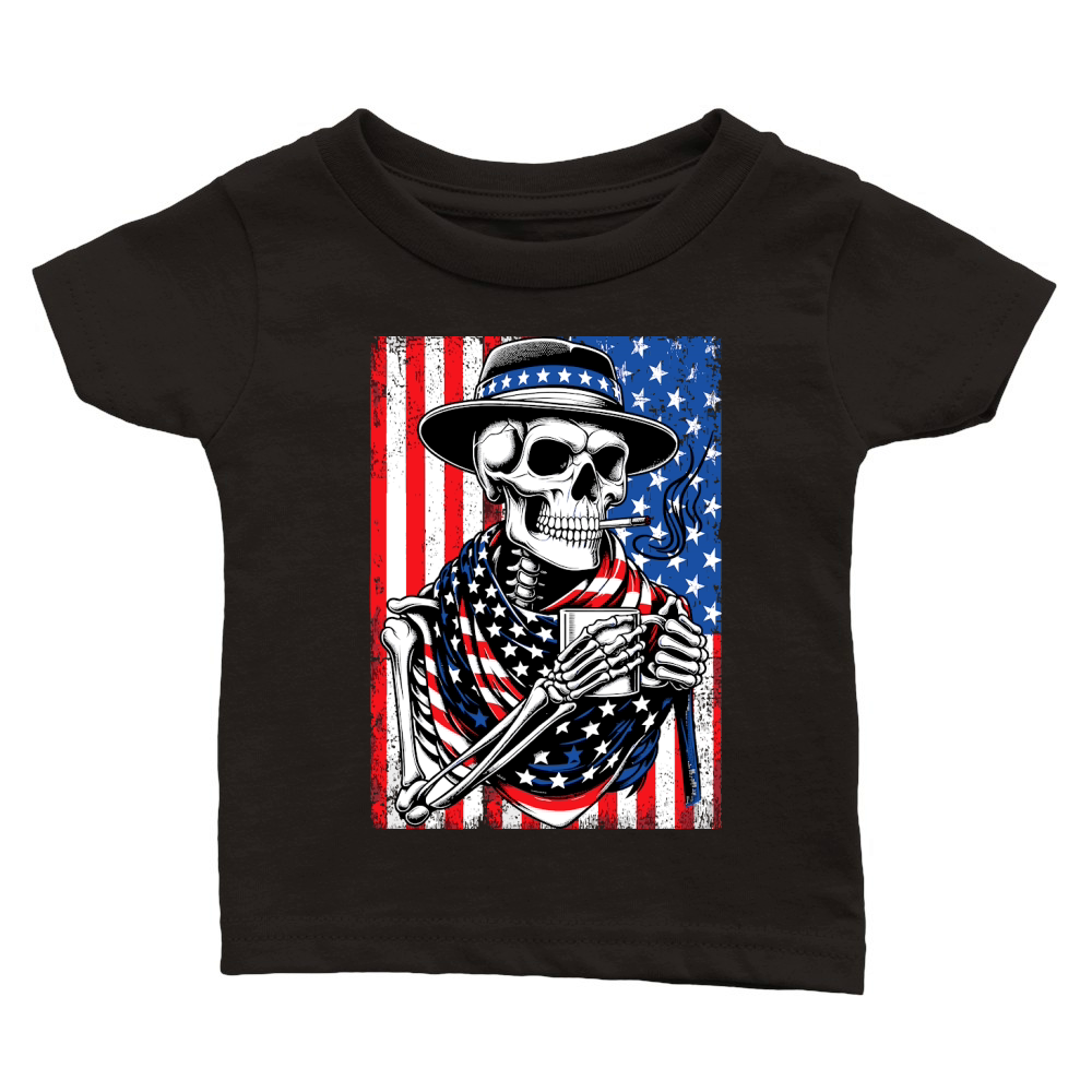 Shop USA Flag Vintage Skeleton 4th of july 33 Classic Baby Crewneck T-shirt custom made just for you. Available on many styles, sizes, and colors.