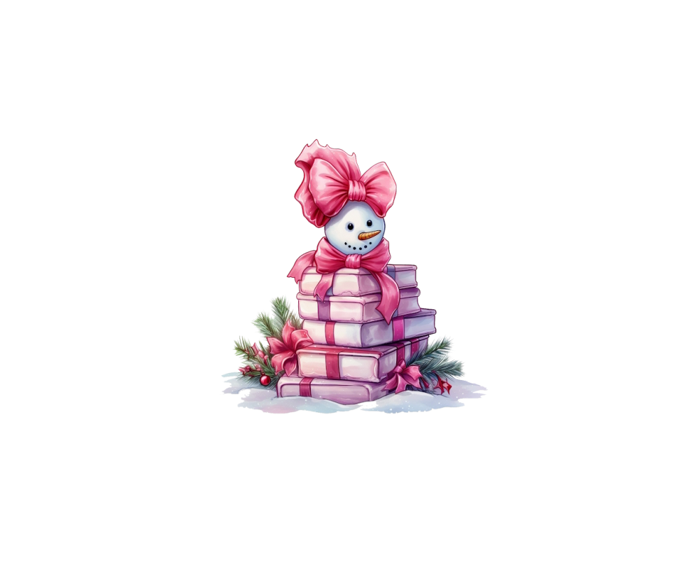 Christmas Pink Snowman Books Watercolor