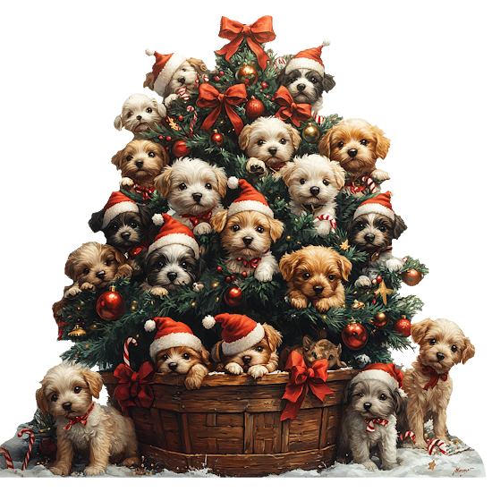 Christmas Puppy Tree Clipart 1