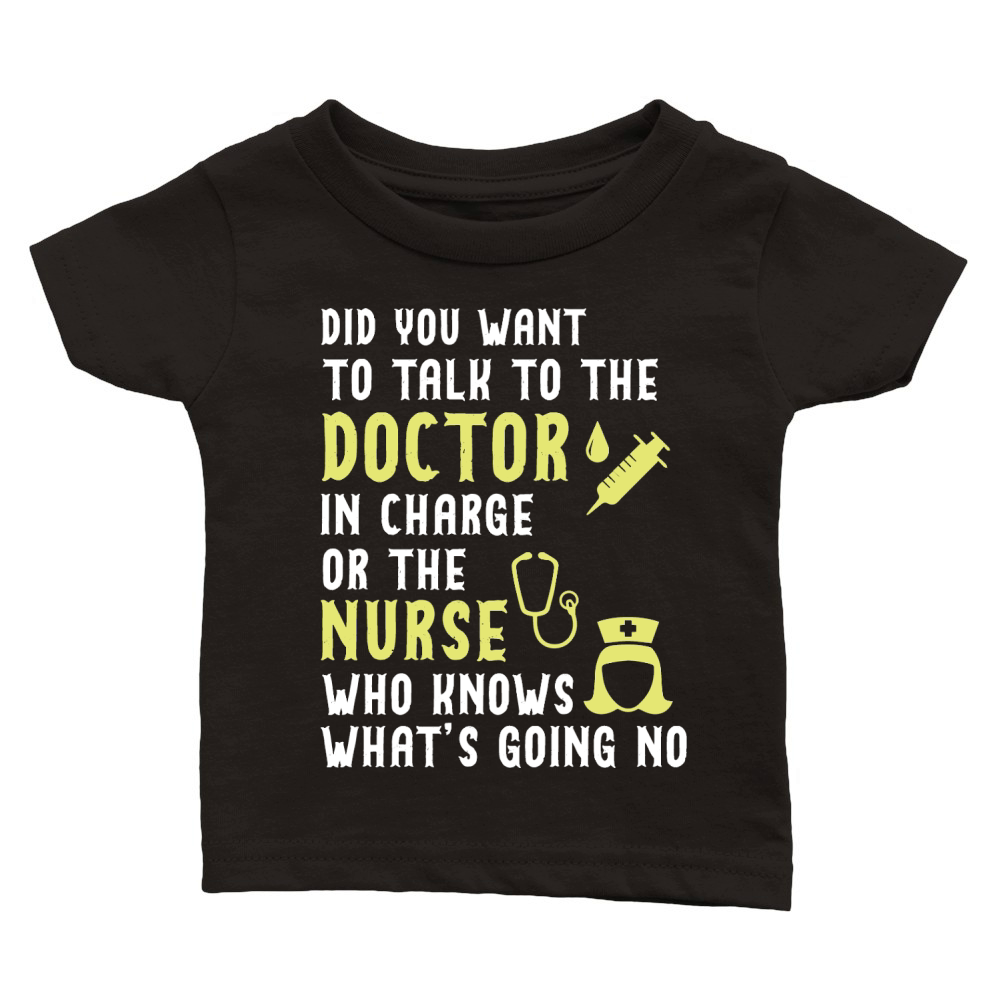 Shop did you want to talk to the doctor in charge or the nurse who knows what is going no Classic Baby Crewneck T-shirt custom made just for you. Available on many styles, sizes, and colors.