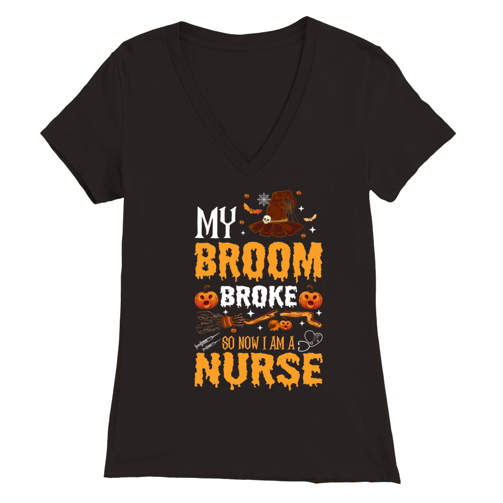 Shop My broom broke so now i am a nurse Premium Womens V-Neck T-shirt custom made just for you. Available on many styles, sizes, and colors.