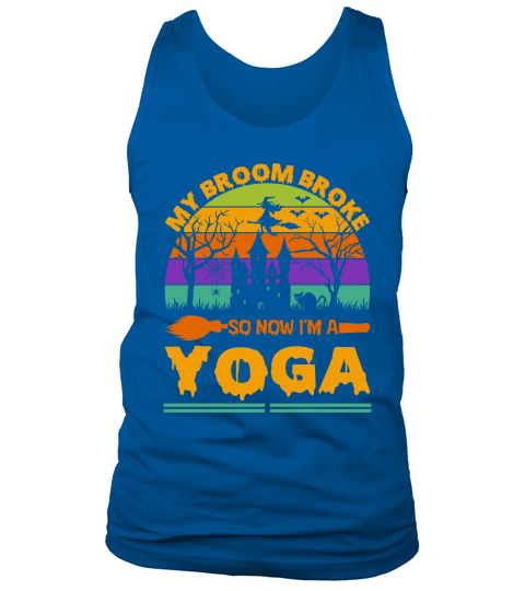 Shop my broom broke so now im a yoga . halloween typography Tank Top Unisex custom made just for you. Available on many styles, sizes, and colors.