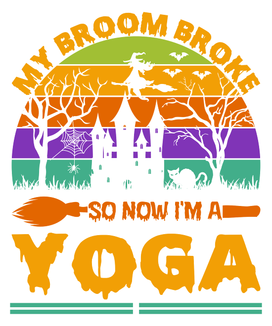 my broom broke so now im a yoga . halloween typography