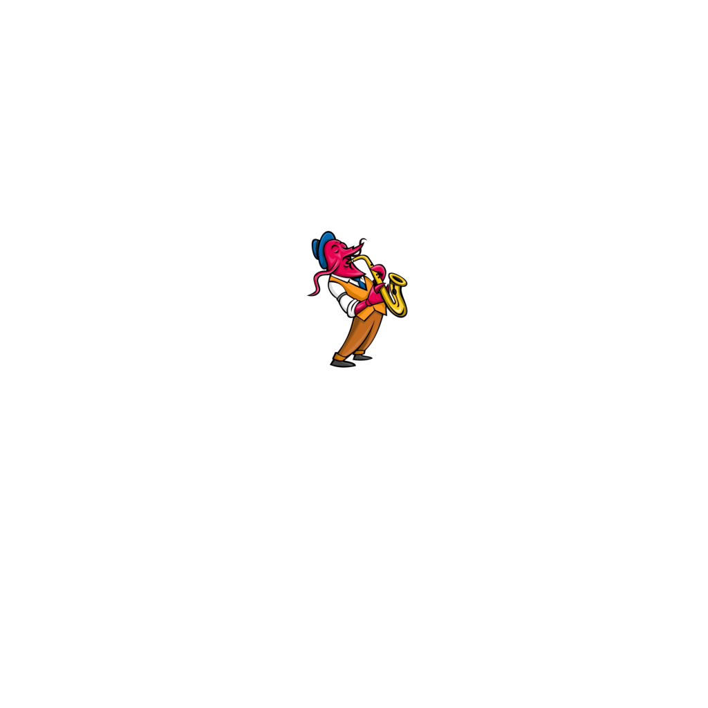 Crawfish Saxophone Player Mascot