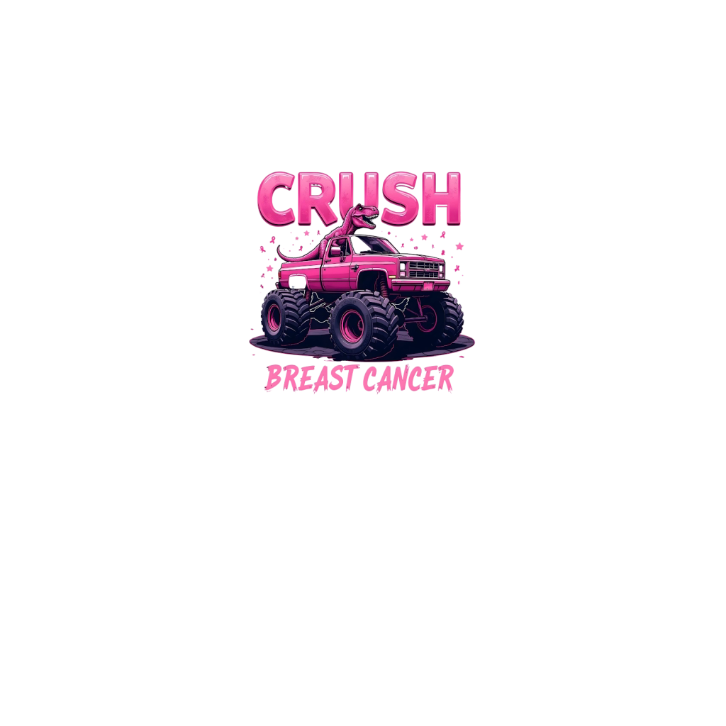 Crush Breast Cancer Pink Monster Truck with Dinosaur