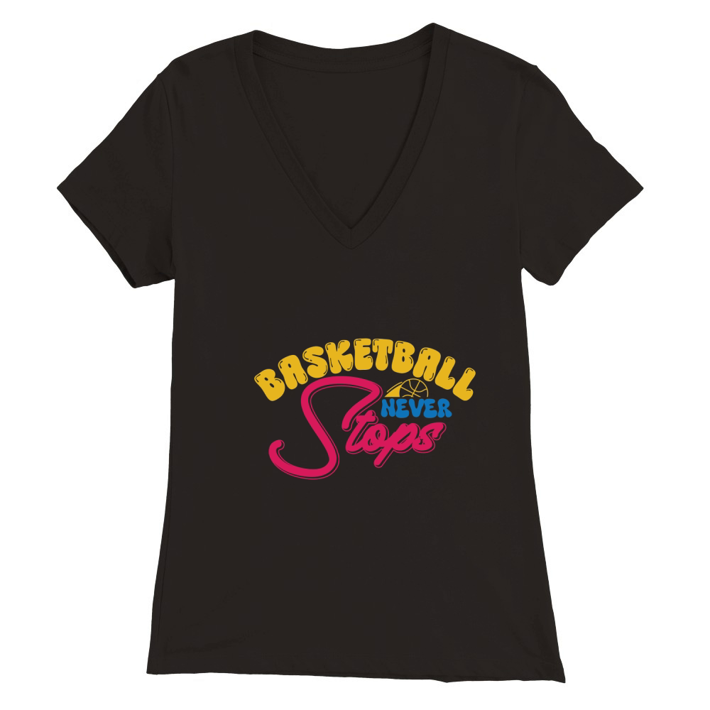 Shop Basketball Never Stops Premium Womens V-Neck T-shirt custom made just for you. Available on many styles, sizes, and colors.