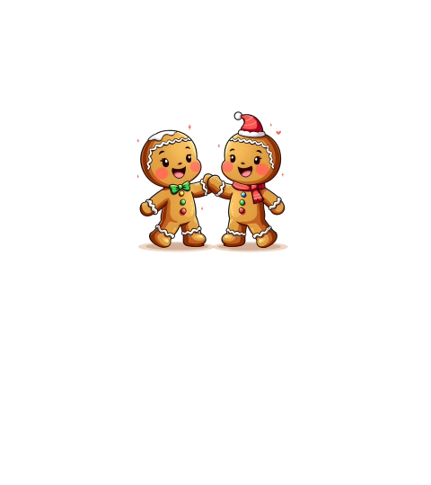 Cute Gingerbread Characters Holding Hand