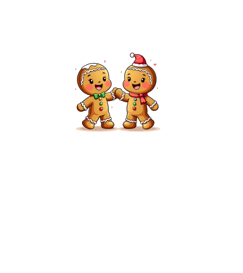 Cute Gingerbread Characters Holding Hand