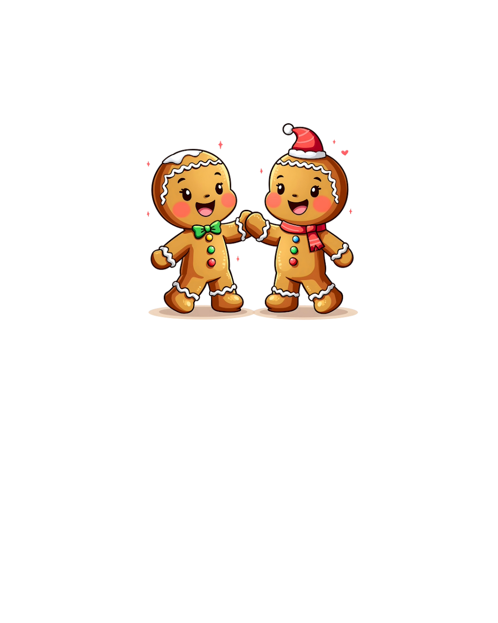 Cute Gingerbread Characters Holding Hand