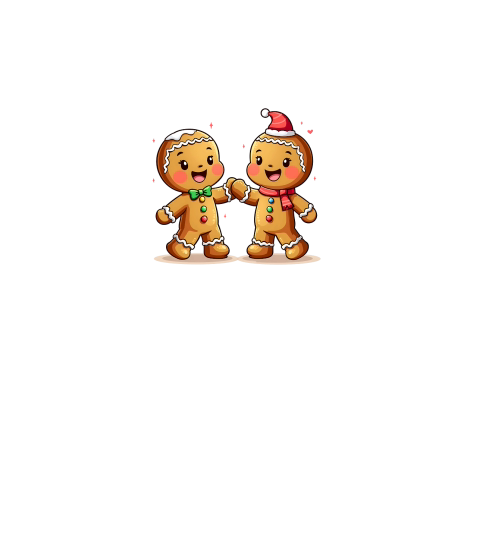 Cute Gingerbread Characters Holding Hand